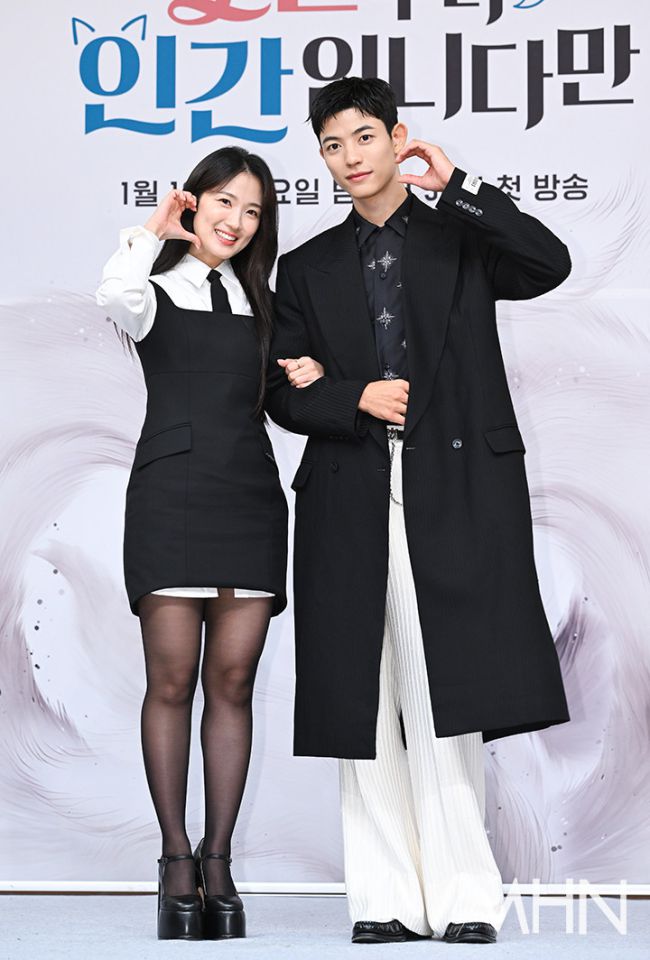 배우 김혜윤, 로몬이 16일 오후 서울 양천구 SBS 목동에서 진행된 드라마 '오늘부터 인간입니다만' 제작발표회에 참석해 포토타임을 갖고 있다. 이날 제작발표회에는 배우 김혜윤, 로몬이 참석했다. SBS 새 금토드라마 '오늘부터 인간입니다만'은 인간이 되기 싫은 MZ 구미호와 자기애 과잉 인간의 좌충우돌 망생 구원 판타지 로맨스다. '오늘부터 인간입니다만'