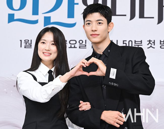 배우 김혜윤, 로몬이 16일 오후 서울 양천구 SBS 목동에서 진행된 드라마 '오늘부터 인간입니다만' 제작발표회에 참석해 포토타임을 갖고 있다. 이날 제작발표회에는 배우 김혜윤, 로몬이 참석했다. SBS 새 금토드라마 '오늘부터 인간입니다만'은 인간이 되기 싫은 MZ 구미호와 자기애 과잉 인간의 좌충우돌 망생 구원 판타지 로맨스다. '오늘부터 인간입니다만'