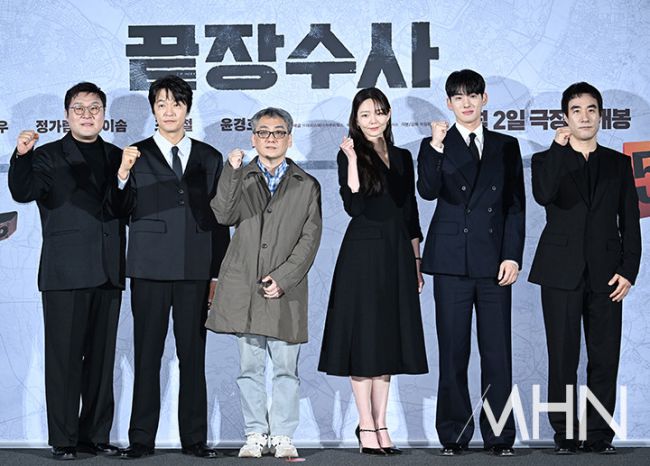 영화 '끝장수사' 주역들이 9일 오전 서울 용산구 GCV용산아이파크몰에서 진행된 영화 '끝장수사' 제작보고회에 참석해 포토타임을 갖고 있다. 제작보고회에는 박철환 감독과 배우 배성우, 정가람, 이솜, 조한철, 윤경호가 참석했다. 실제 사건을 모티브로 한 범죄 수사극 '끝장수사'는 촌구석으로 좌천된 형사 재혁에게 찾아온 인생 마지막 기회! 두 명의 용의자가