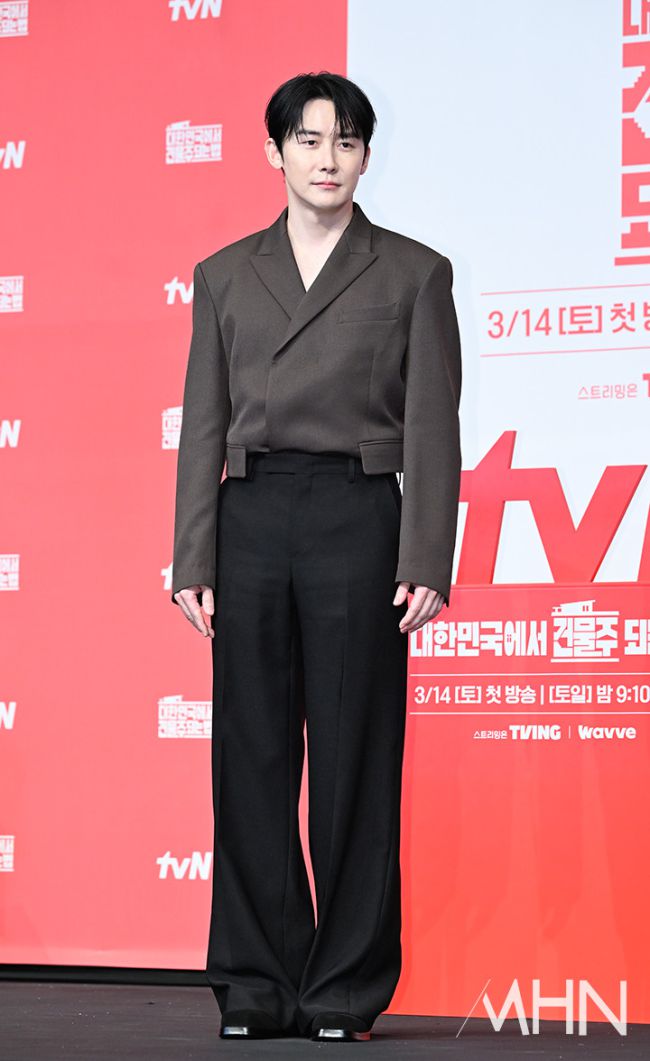 배우 김준한이 9일 오후 서울 구로구 더 링크호텔 서울에서 진행된 드라마 '대한민국에서 건물주 되는 법' 제작발표회에 참석해 포토타임을 갖고 있다. 제작발표회에는 배우 하정우, 임수정, 김준한, 정수정, 심은경과 임필성 감독이 참석했다. tvN 새 토일드라마 '대한민국에서 건물주 되는 법'은 빚에 시달리는 생계형 건물주가 가족과 건물을 지키기 위해 가짜 납