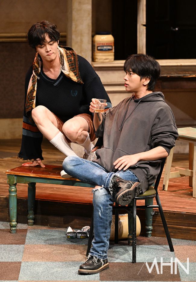 배우 최석진, 최정우가 19일 오후 서울 종로구 TOM에서 진행된 연극 '오펀스' 프레스콜에서 열연을 선보이고 있다. 프레스콜에는 배우 박지일, 우현주, 이석준, 양소민, 정인지, 문근영, 최석진, 오승훈, 김시유, 김주연, 최정우, 김단이 등이 참석했다. 연극 '오펀스'는 중년의 갱스터 해롤드와 고아 형제 트릿, 필립이 이상한 동거를 시작하며 가족이 되어