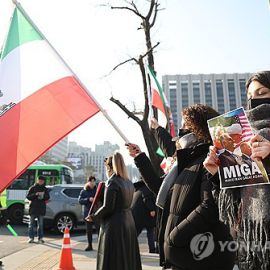 팔레비 왕조 깃발 흔드는 이란인들