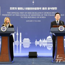 韓-伊 공동언론발표…李대통령 "비즈니스포럼·과학 방산 협력, 머지않아 伊방문"