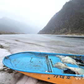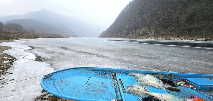 한파에 발 묶인 단양 남한강 어선