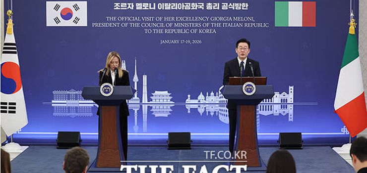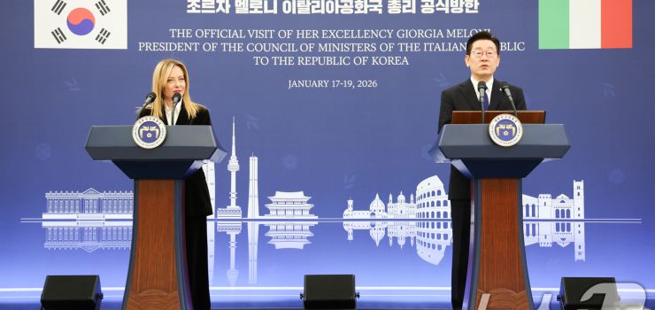 韓-伊 공동언론발표…李대통령 "비즈니스포럼·과학 방산 협력, 머지않아 伊방문"
