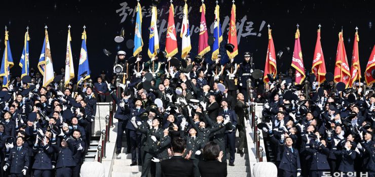 李대통령 만난 신임장교 558명, 모자 세리머니하며 자축