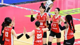 페퍼저축은행, 1위 도로공사 꺾고 '한 시즌 최다 승리' 타이기록